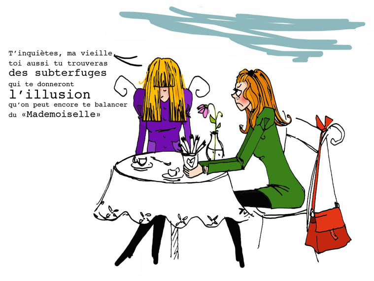 Bravo pour les illu.!! J’ai l’impression très vague d’avoir vécue ce genre de situation il n’y a pas si longtemps …. heureusement tout l’entourage est là pour te rassurer et dire que « pour ton âge tu es bien conservée … »